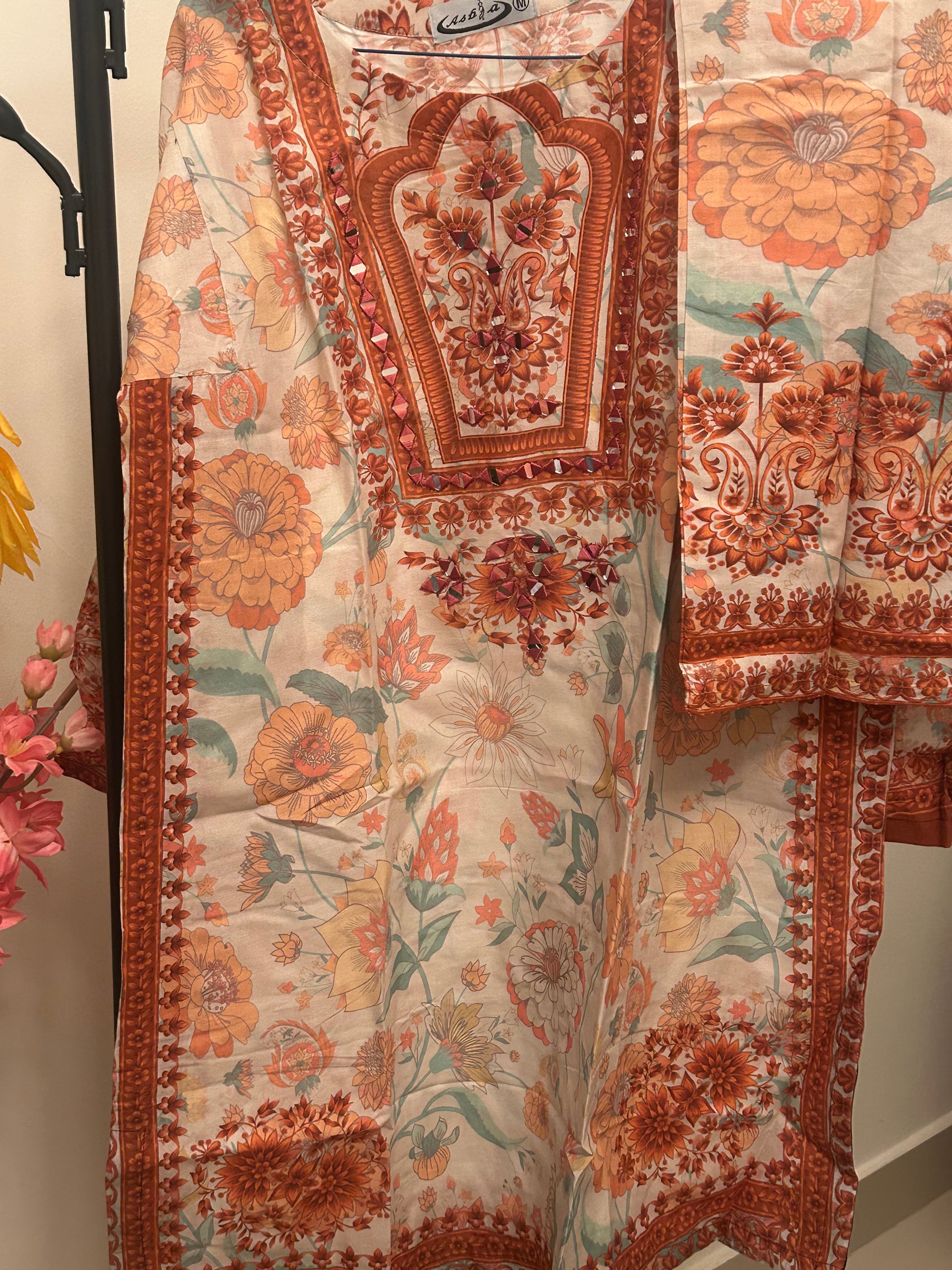 Elevate your summer wardrobe with our Floral Fusion Coord Sets, a perfect harmony of tradition and trend. Crafted from a luxurious blend of breezy Lawn and smooth Silk, these two-piece sets are designed to keep you cool, comfortable, and effortlessly stylish all season long.