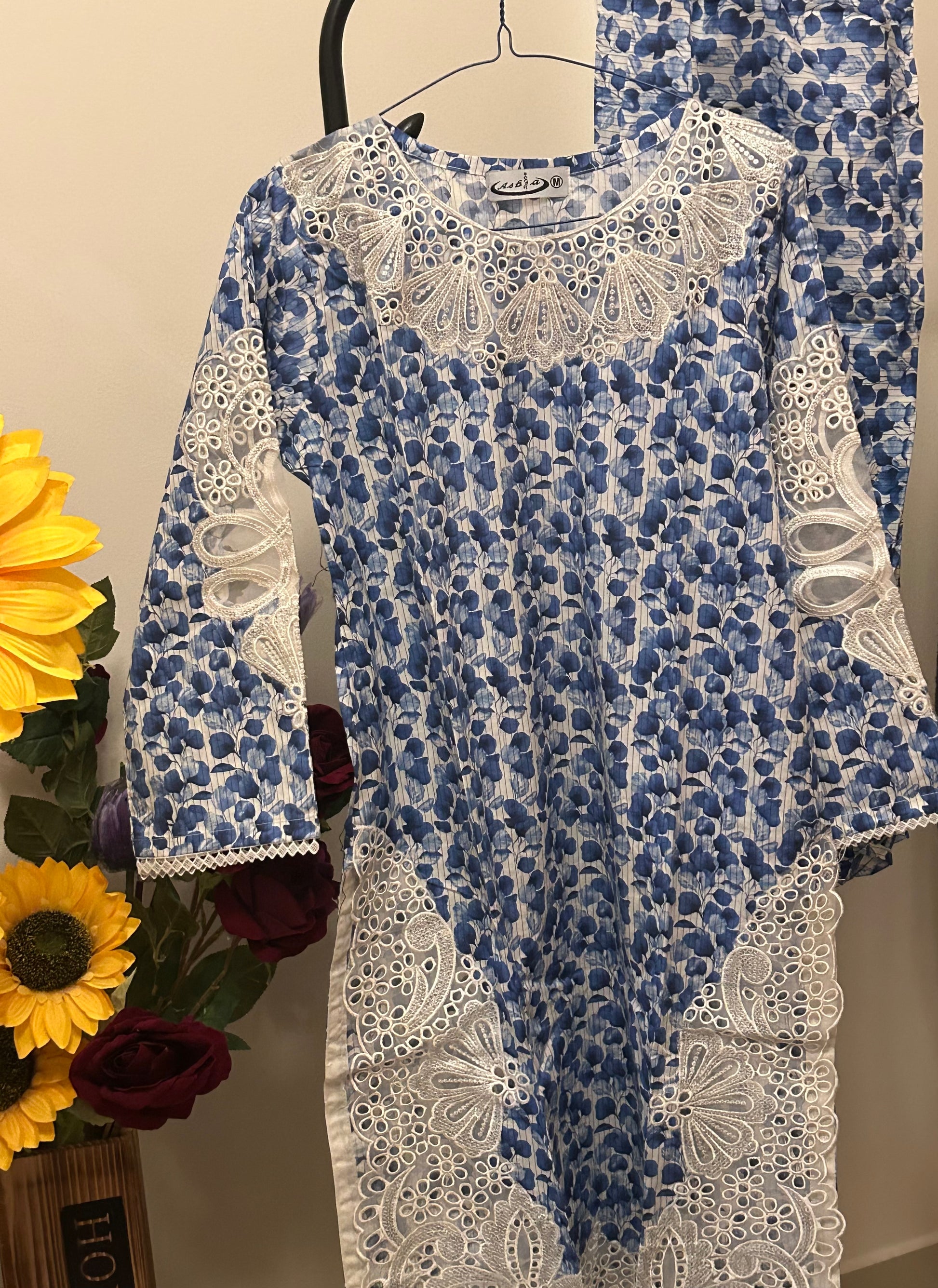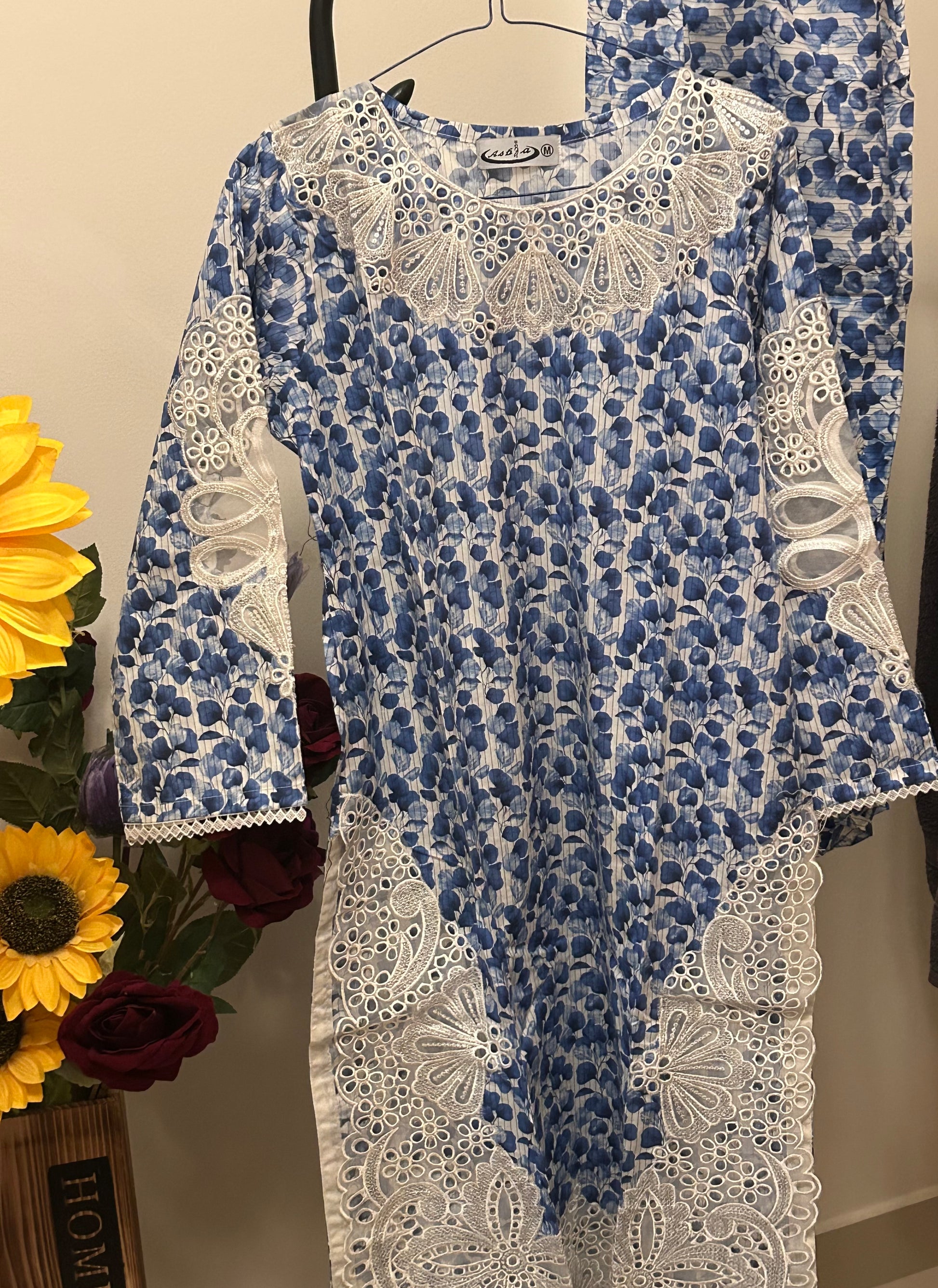 Semi-formal lawn wear with embroidery combines comfort and elegance, featuring lightweight fabric and delicate embroidered details. Available in all sizes, it's perfect for stylish yet breathable dressing for day or evening events.