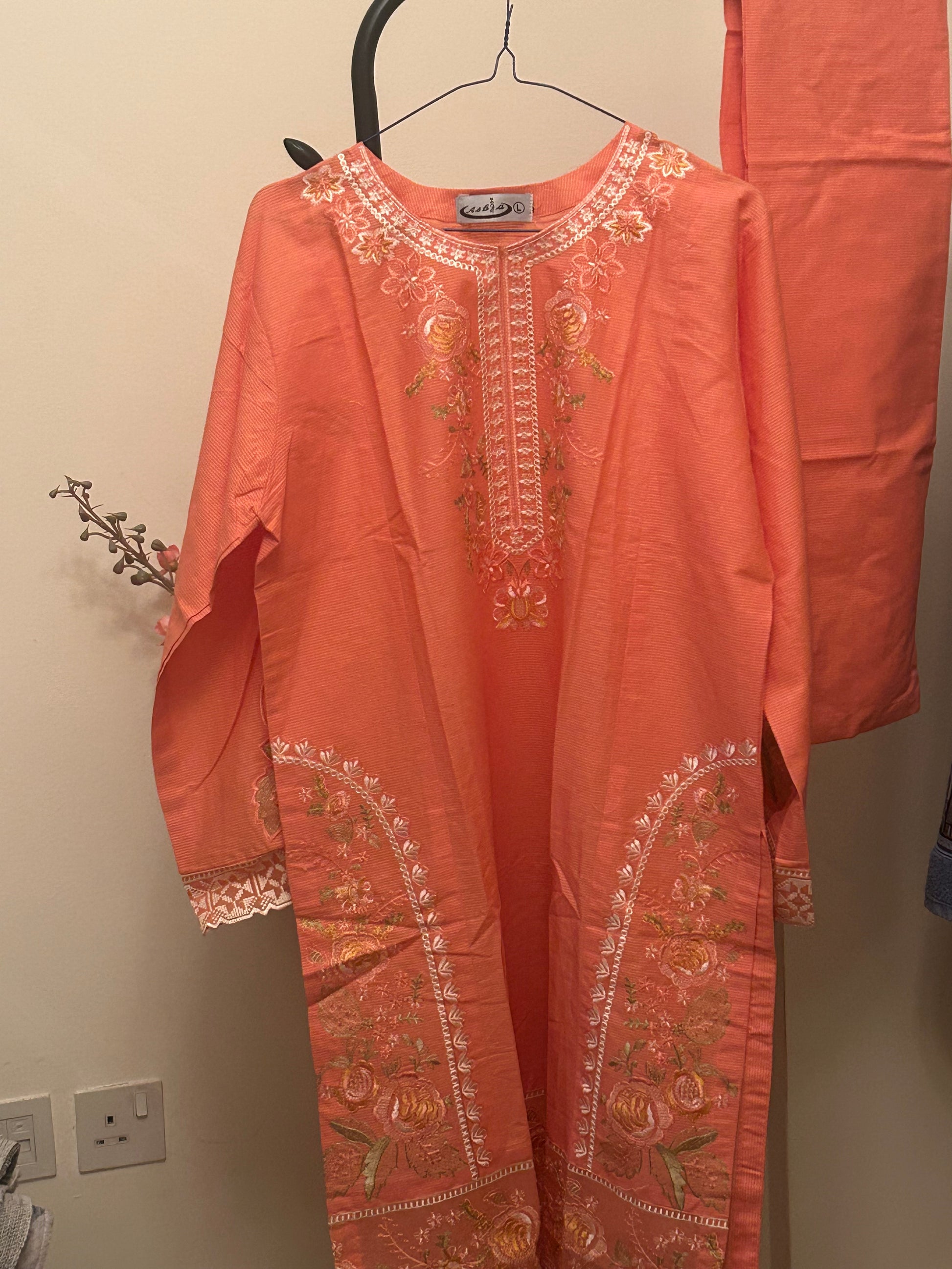Semi-formal lawn wear with embroidery combines comfort and elegance, featuring lightweight fabric and delicate embroidered details. Available in all sizes, it's perfect for stylish yet breathable dressing for day or evening events.