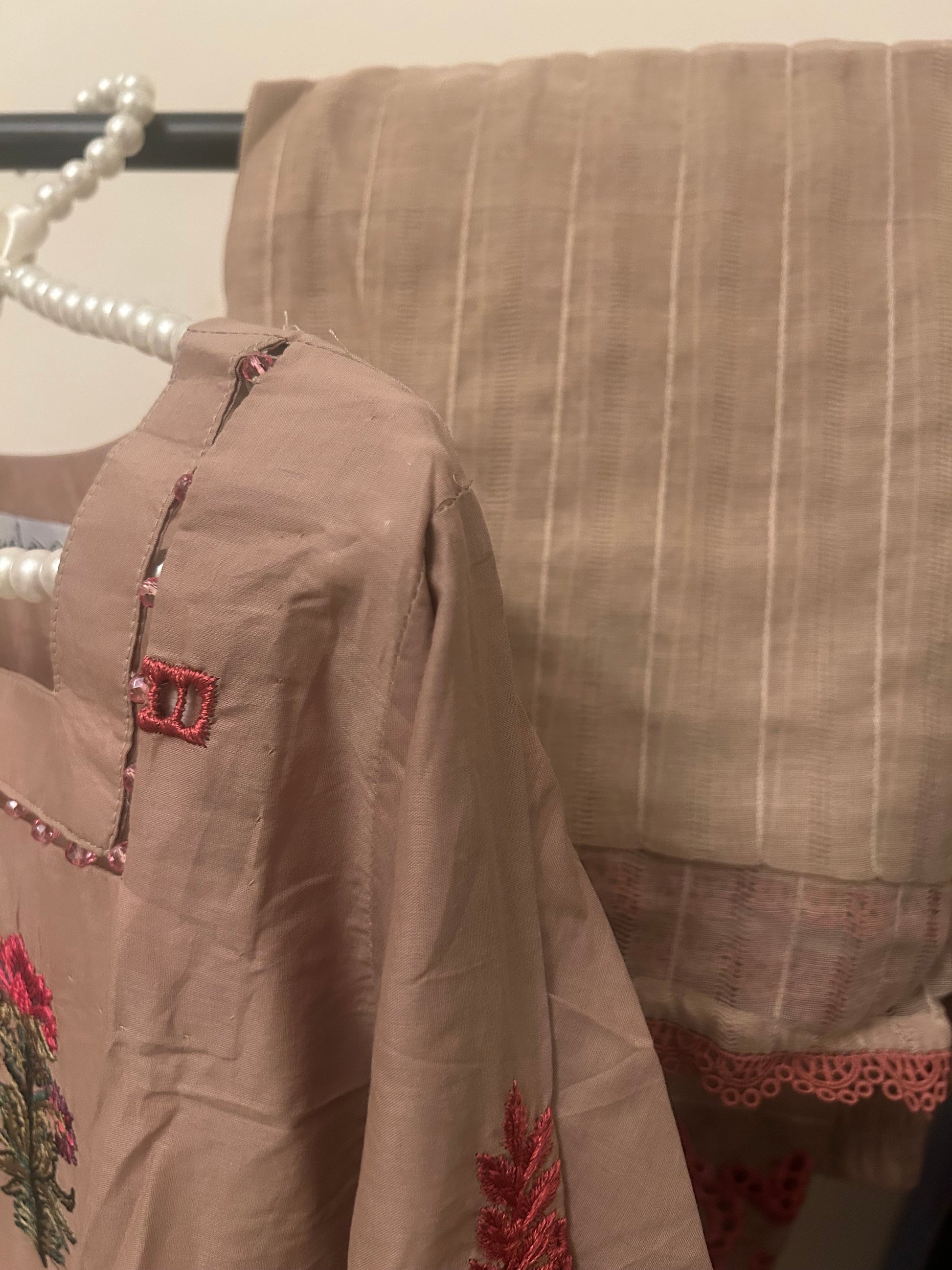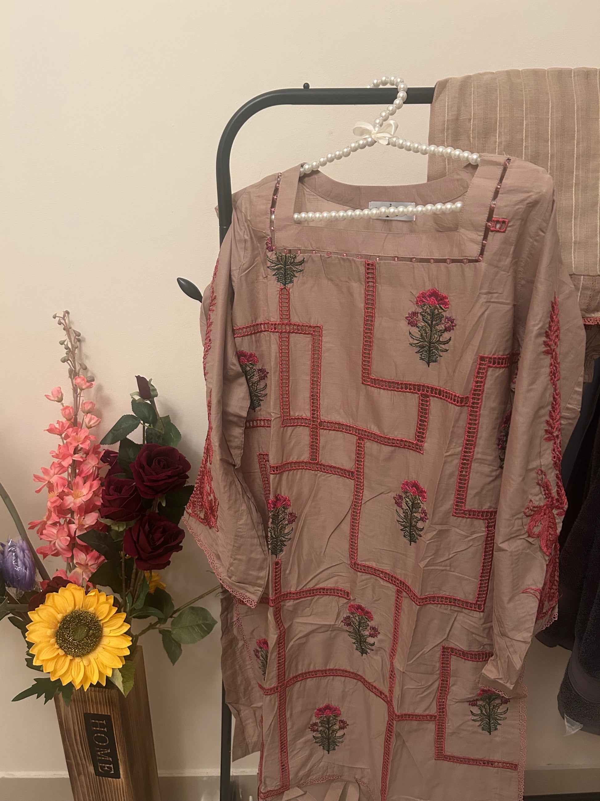Semi-formal lawn wear with embroidery combines comfort and elegance, featuring lightweight fabric and delicate embroidered details. Available in all sizes, it's perfect for stylish yet breathable dressing for day or evening events.