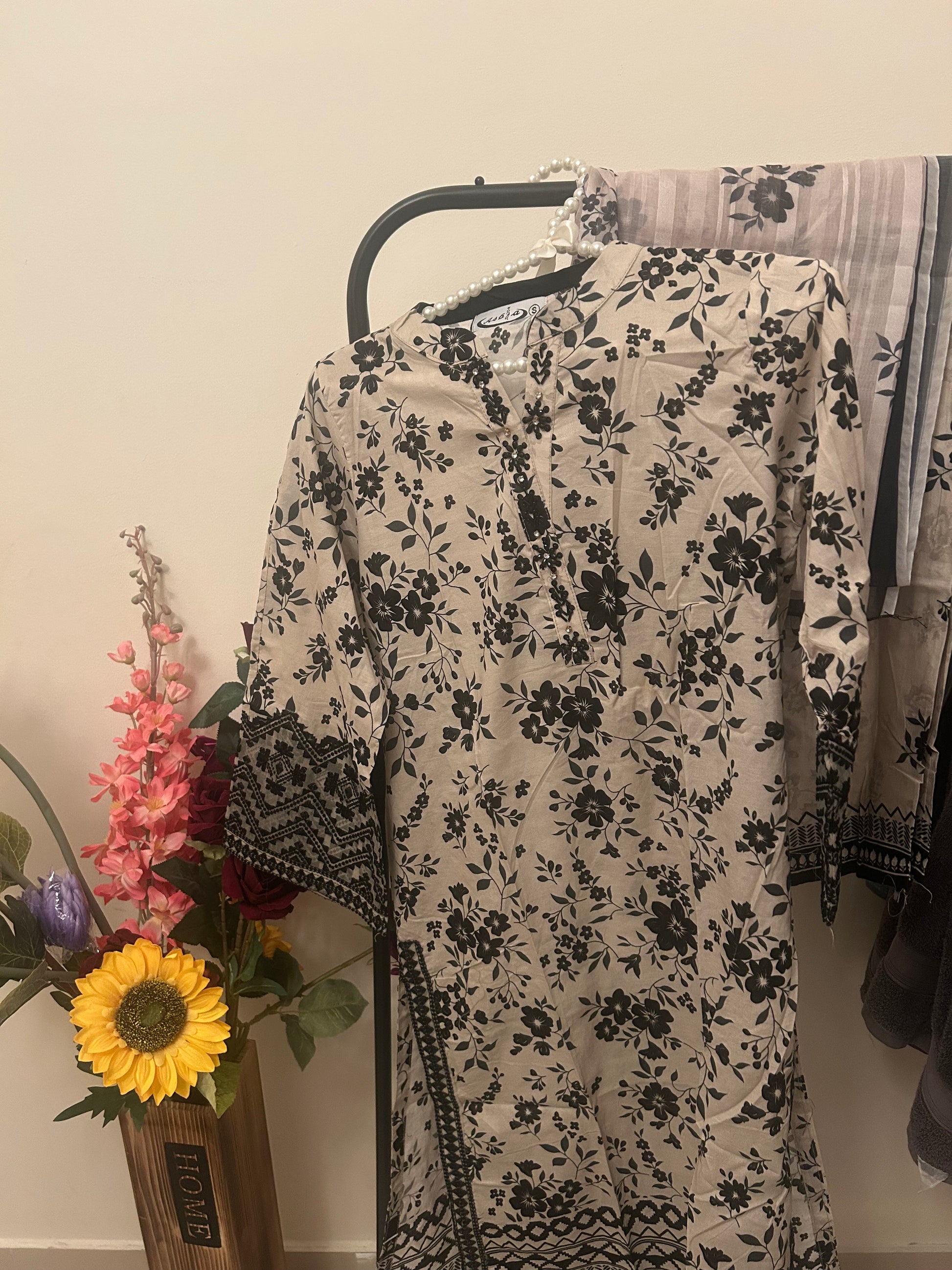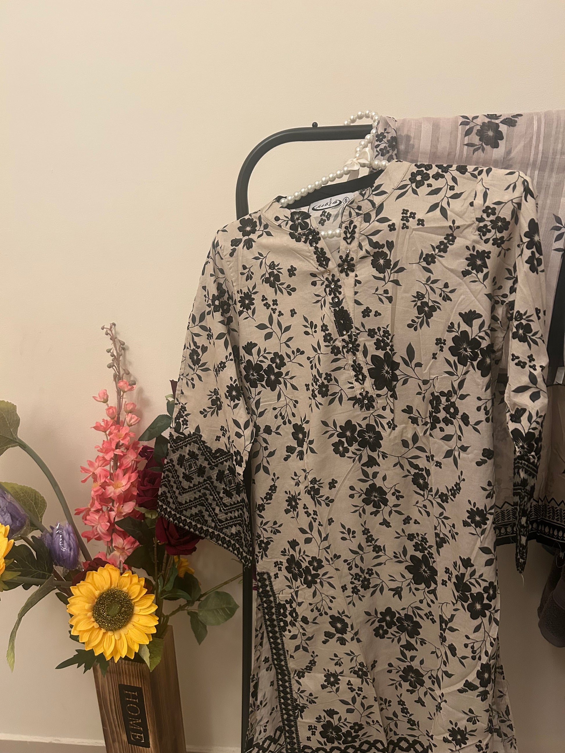 Semi-formal lawn wear with embroidery combines comfort and elegance, featuring lightweight fabric and delicate embroidered details. Available in all sizes, it's perfect for stylish yet breathable dressing for day or evening events.